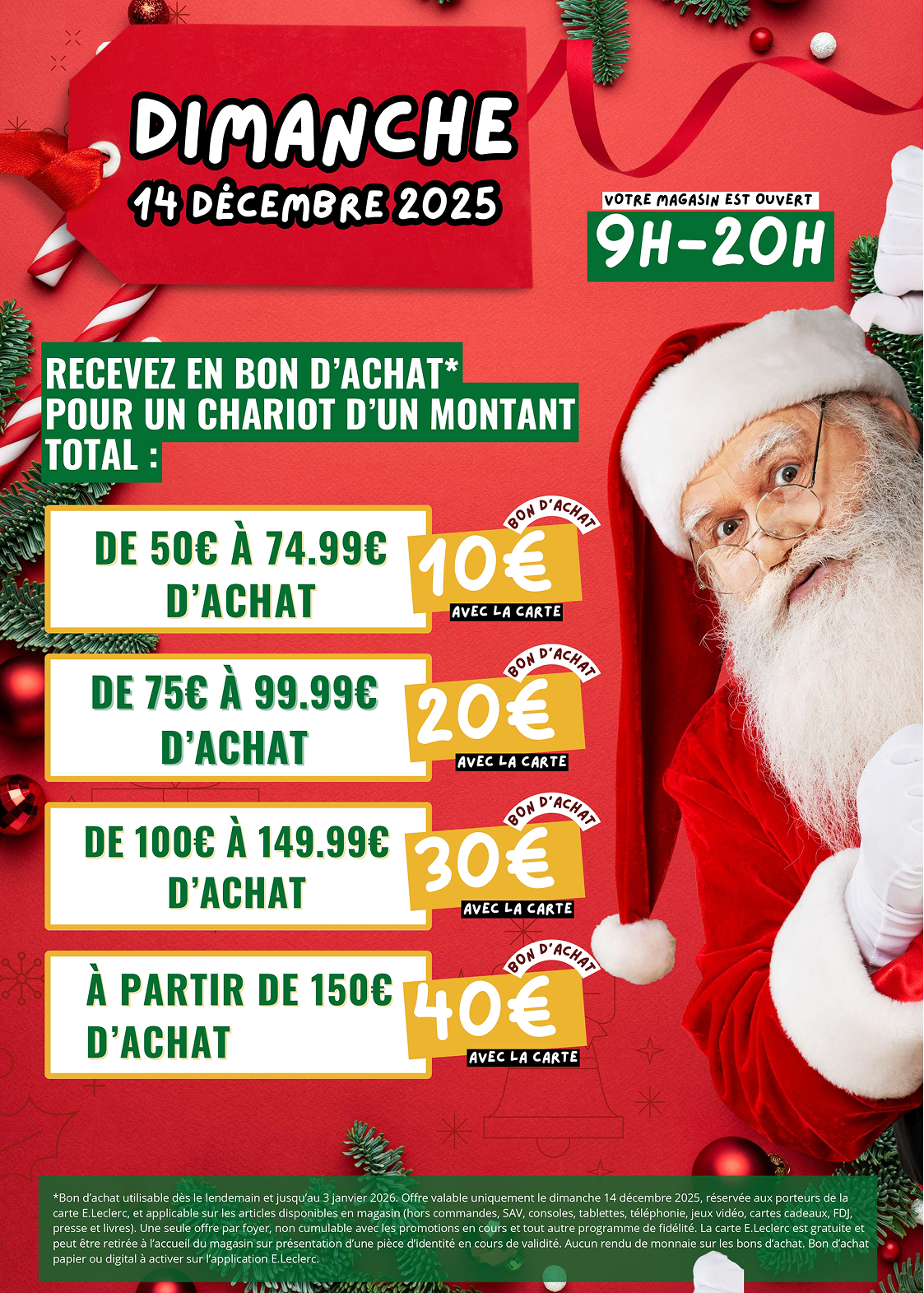Votre e.leclerc Colombes sera ouvert exceptionnellement le MERCREDI 24 Décembre 2025
